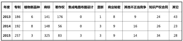 表 6 2013-2015年最高人民法院知识产权案件情况(按所涉客体类型分)